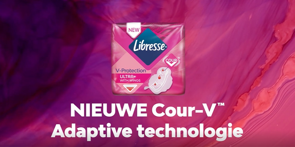 De nieuwe COUR-V™ adaptive technology in onze Libresse Ultra maandverband biedt je de hygiënische bescherming die je nodig hebt en onze meest veelzijdige pasvorm.
