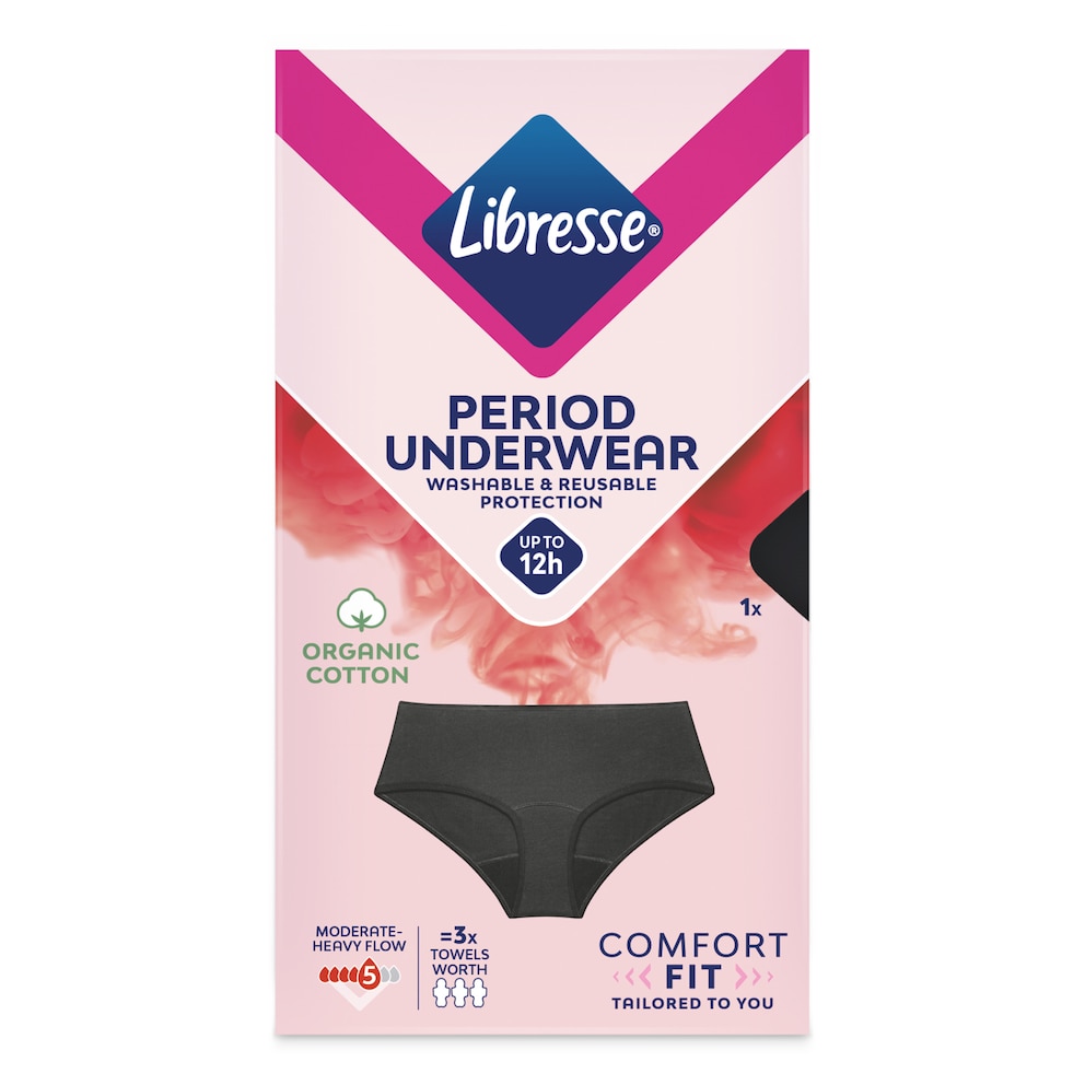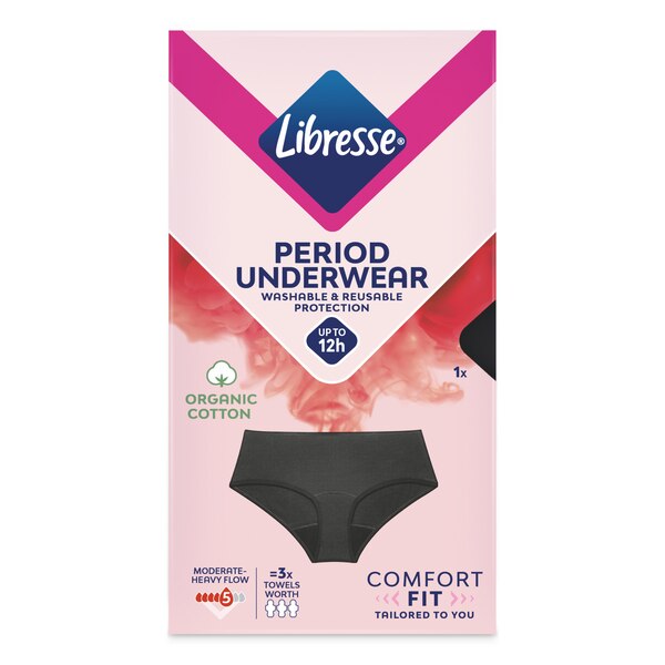 Draag het zachte, katoenen menstruatie ondergoed van Libresse als je ongesteld bent. Het is alles wat je nodig hebt om je droog en fris te blijven voelen, of je nu een lichte of zware menstruatie hebt.